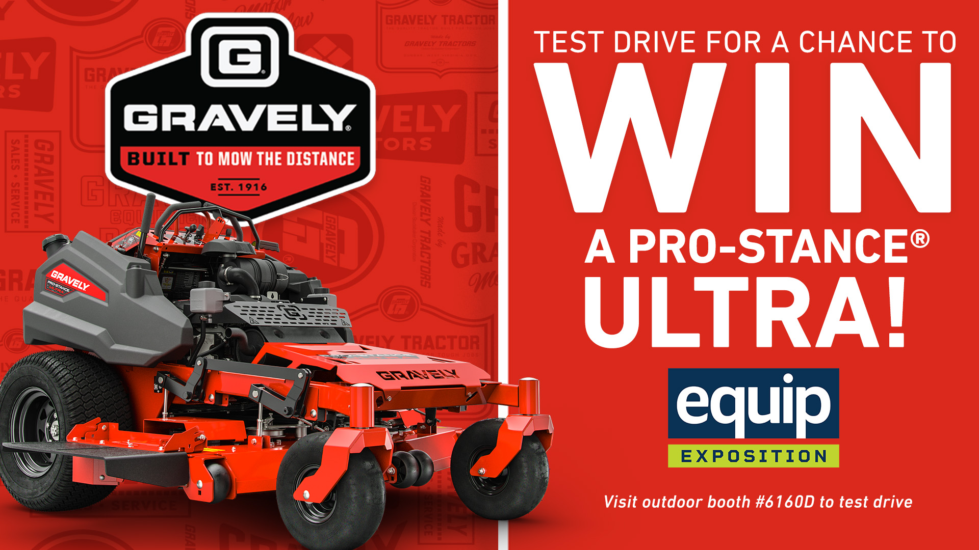 Attending Equip Expo in Louisville? Test drive the award-winning Gravely Pro-Stance Ultra, get your badge scanned, and fill out your ticket for a chance to win one for yourself!