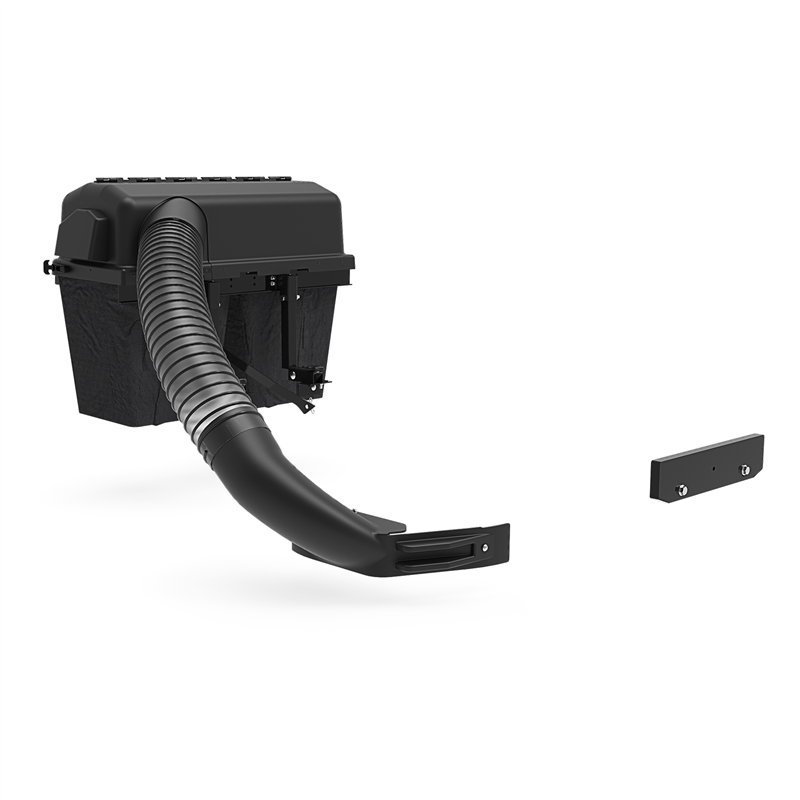 • Kit includes bagger assembly, hose and boot assembly, bagger support components, mounting hardware, and assembly instructions